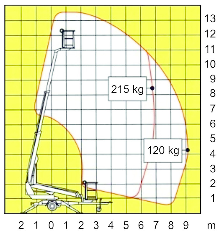 * Die seitliche Reichweite ist lastabhängig (einschl. Handbereich) siehe Diagramm