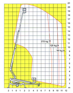 * Die seitliche Reichweite ist lastabhängig (einschl. Handbereich) siehe Diagramm