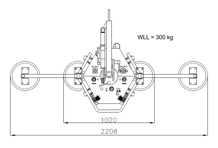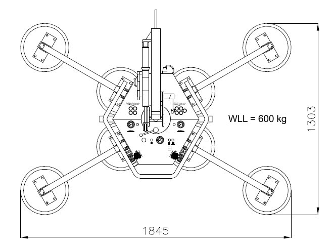 4 Saugteller 707 x 817 mm (300 kg) max. Plattengröße BxH: 1850 x 1700