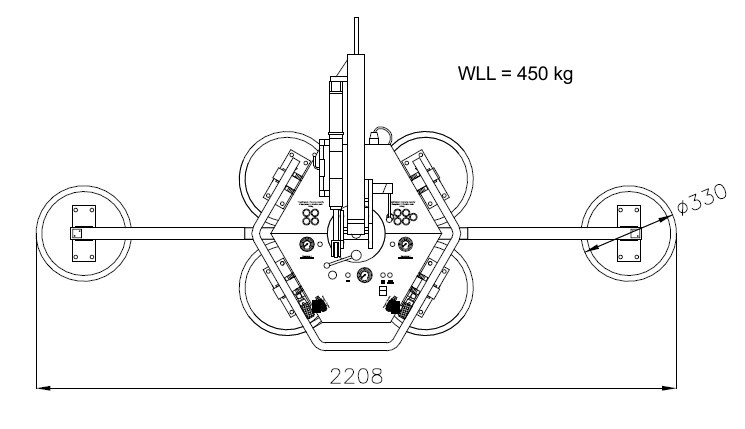 4 Saugteller 2208 x 330 mm (300 kg) max. Plattengröße BxH: 3250 x 1330