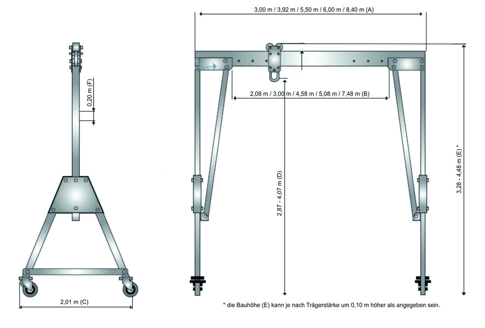 Baulänge A:3,00 m / 3,92 m / 5,50 m / 6,00 m / 8,40 m**