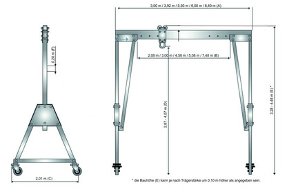 *** die Bauhöhe (E) kann je nach Trägerstärke um 0,10 m höher als angegeben sein.