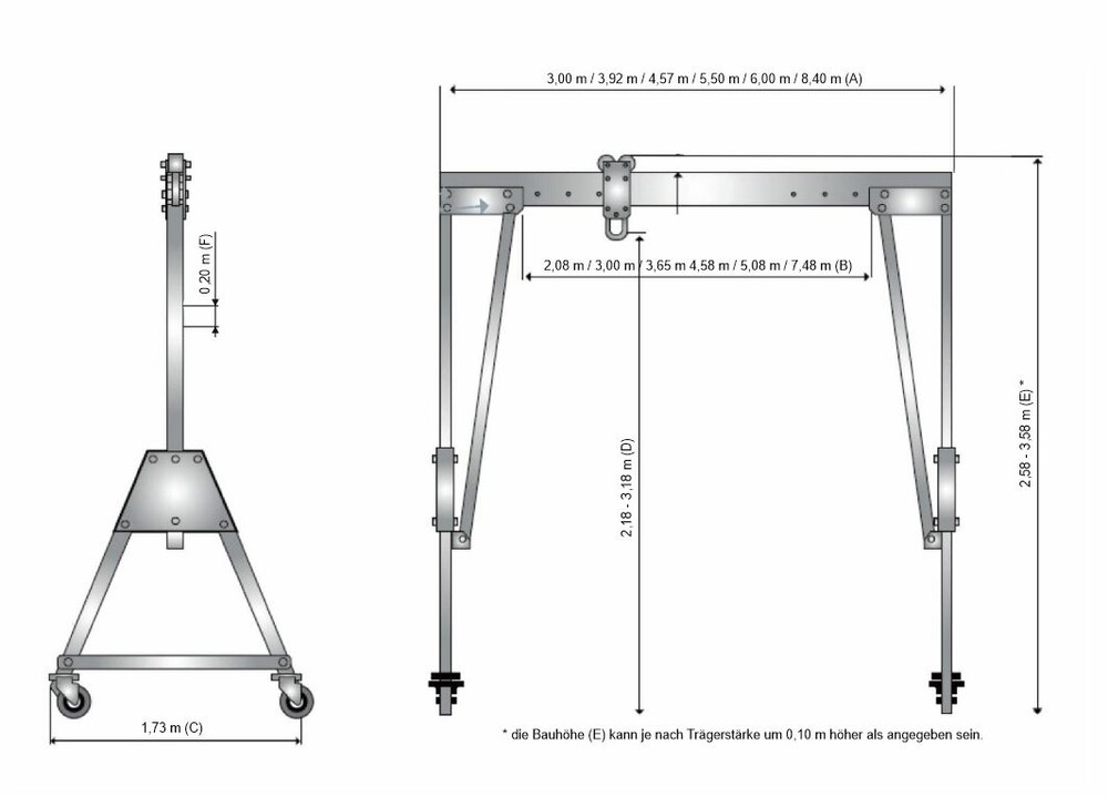 *** die Bauhöhe (E) kann je nach Trägerstärke um 0,10 m höher als angegeben sein.