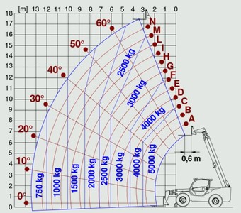 * 5000 kg bei 0,6 m LSP, siehe Diagramm