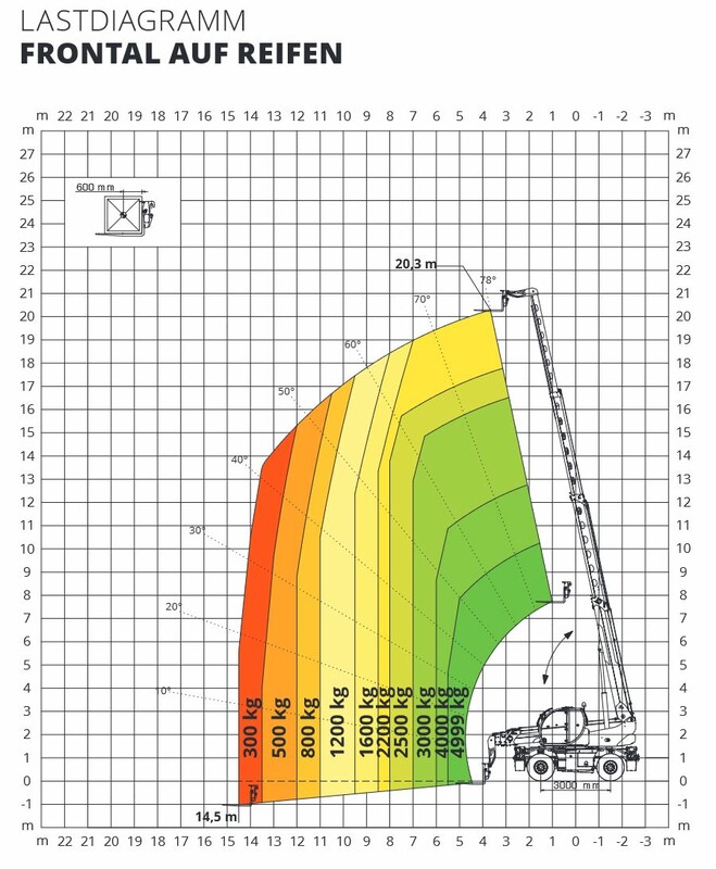 - Arbeitskorb (LxB 4,53 x 0,83 m, Tragkraft 500 kg)
